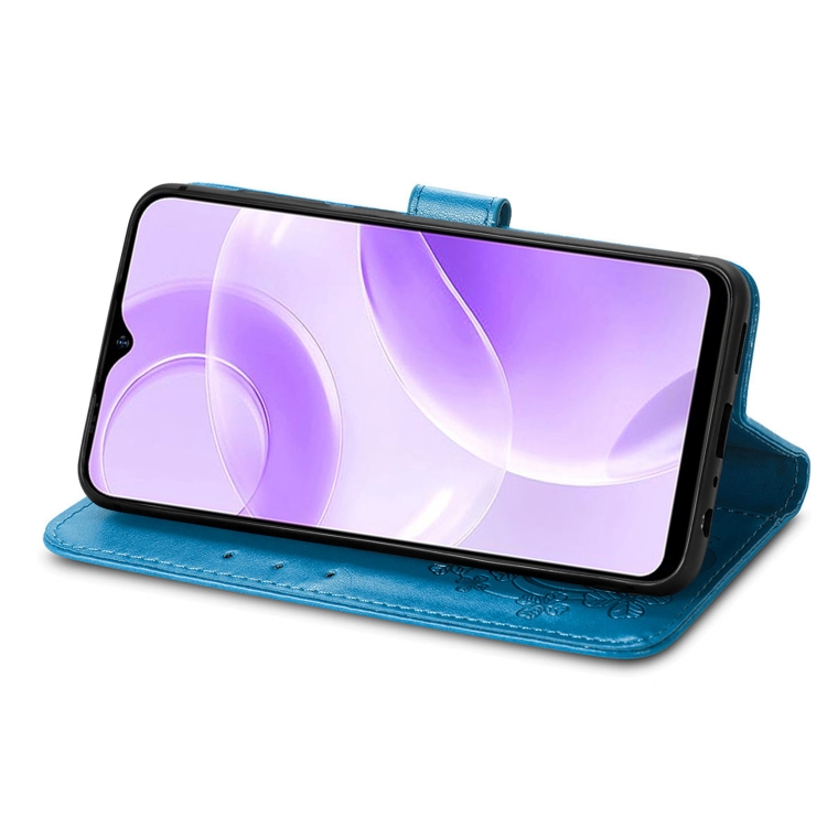 Funda de Cuero para Ulefone Note 15 con Hebilla En Relieve y Cierre de Cuatro Hojas (Azul)