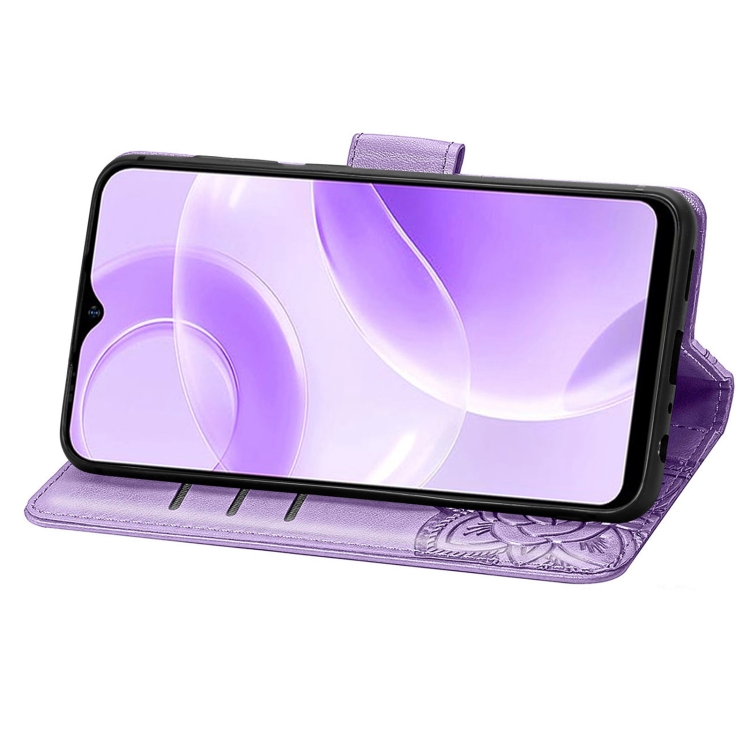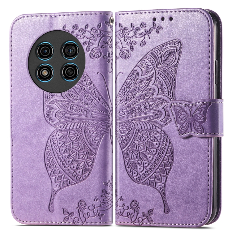 Funda para Ulefone Note 15 de Cuero con Relieve Flor y Mariposa (Lavanda)