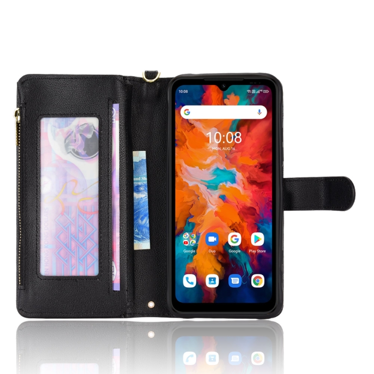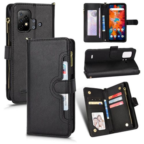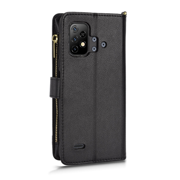 Funda para Umidigi Bison X10 con Textura Litchi y Cremallera de Cuero (Negro)