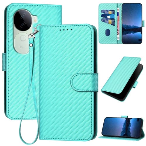Funda de Cuero con Hebilla de Fibra de Carbono y Cordón para Vivo Iqoo Z9S/V40E (India Yx0070) (Azul Claro)