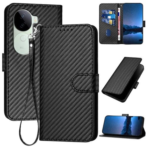 Funda de Cuero con Hebilla de Fibra de Carbono y Cordón para Vivo Iqoo Z9S/V40E (India Yx0070) (Negro)