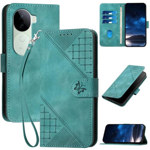 Para Vivo Iqoo Z9S / V40E India Yx0080 Funda de Cuero con Tapa y Patrón En Relieve de Mariposa y Cuadrícula con Cordón (Azul Claro)