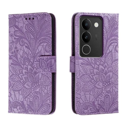 Para Vivo S17 Funda de Cuero con Tapa y Estampado de Flores de Encaje (Púrpura)