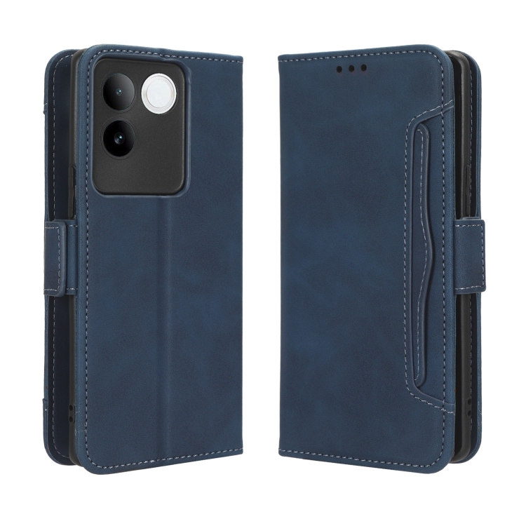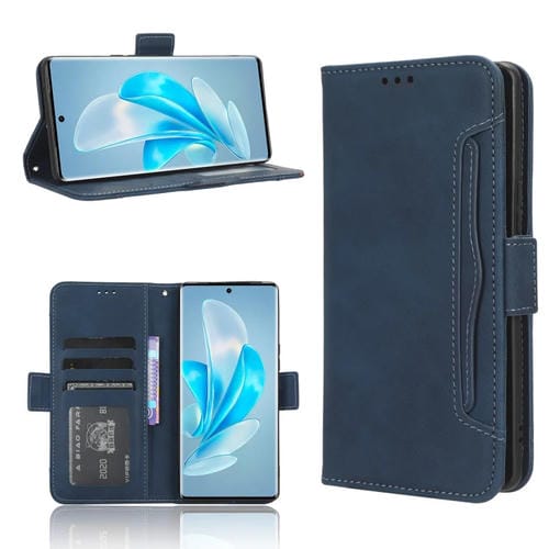 Para Vivo S17E Skin Feel Becerro Textura Ranuras para Tarjetas Funda de Cuero para Teléfono (Azul)
