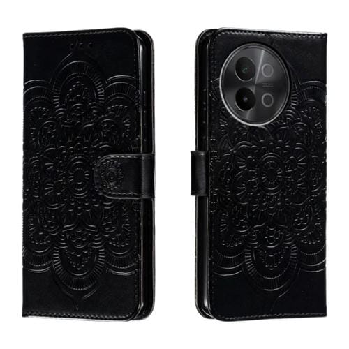 Para Vivo S18E Sun Mandala Funda de Cuero para Teléfono con Patrón En Relieve (Negro)