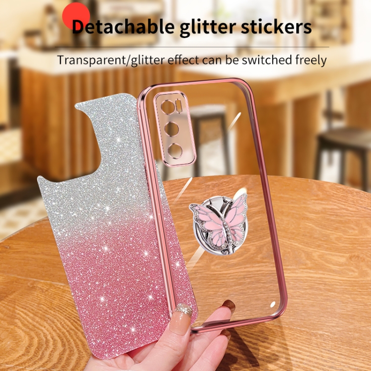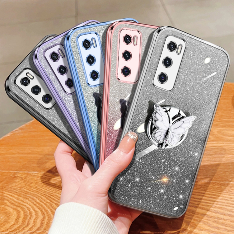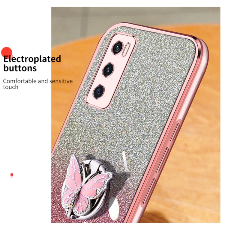 Para Vivo V20 Se Funda para Teléfono de TPU con Soporte de Mariposa con Brillo Degradado Plateado (Púrpura)