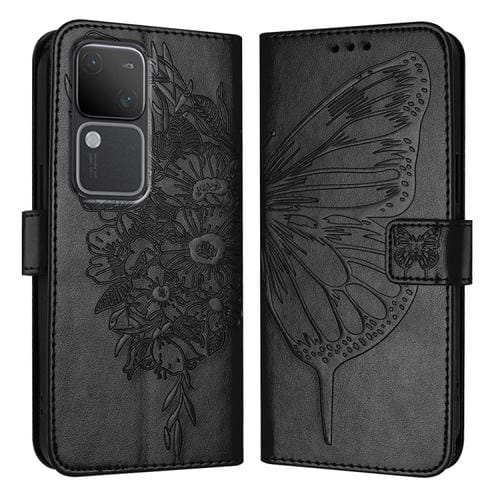 Para Vivo V30 5G / V30 Pro 5G Funda para Teléfono de Cuero con Mariposa En Relieve Global (Negro)