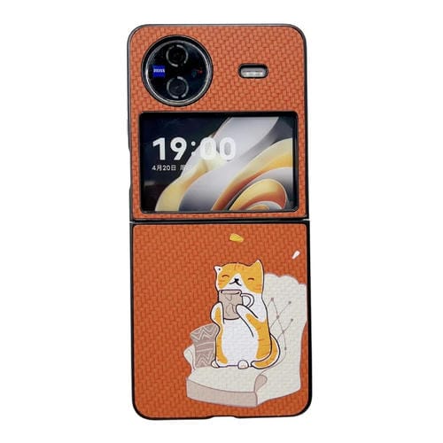 Para Vivo X Flip Funda para Teléfono con Patrón de Dibujo Coloreado con Textura Trenzada (Gato Café Marrón)
