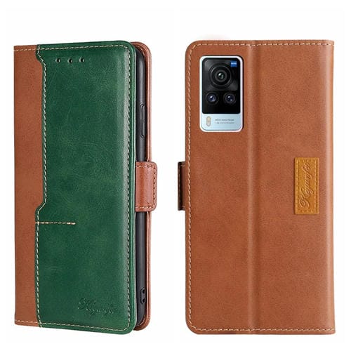 Para Vivo X60 Pro Global/X60 Curred Screen Contrast Color Color Butwle Telephone (Marrón Claro + Verde)