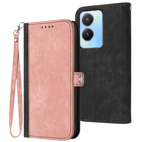 Para Vivo Y02S 4G Funda de Cuero para Teléfono con Hebilla Lateral Global y Correa de Mano con Doble Pliegue (Rosa)
