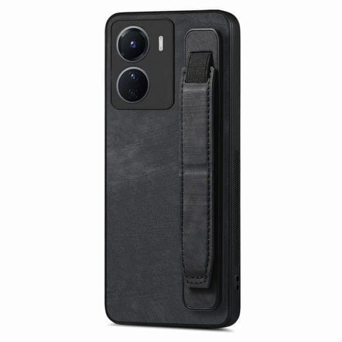Para Vivo Y16 Retro Muñequera Funda Trasera de Cuero para Teléfono (Negro)