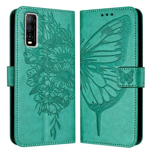 Para Vivo Y70S Funda de Cuero con Mariposa En Relieve (Verde)
