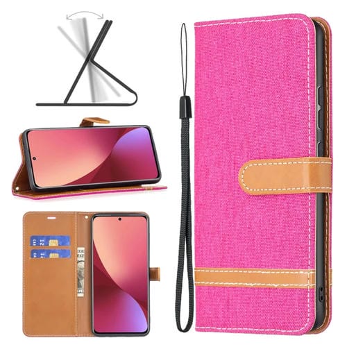 Para Xiaomi 12 Color Denim Texture Texture Case de Cuero (Rosa Roja)