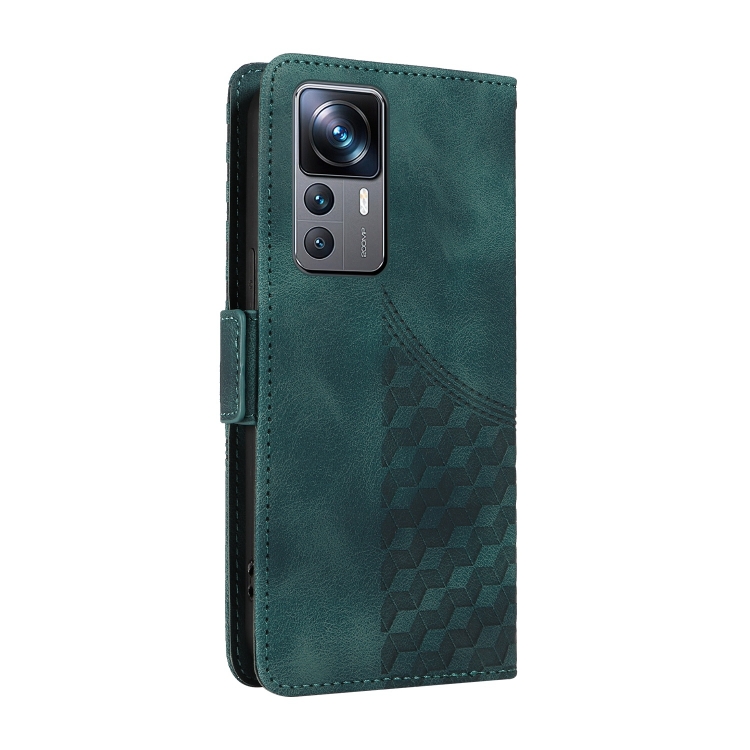 Para Xiaomi 12T / 12T Pro Funda de Teléfono de Cuero Estrellado con Rombos En Relieve (Verde)