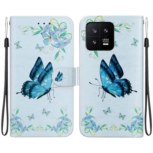 Para Xiaomi 13 5G Funda de Teléfono de Cuero con Dibujo Coloreado con Textura de Cristal (Pensamientos Azules)