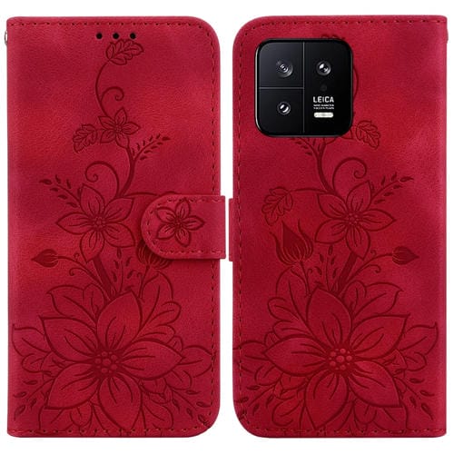 Para Xiaomi 13 5G Lily Funda de Cuero En Relieve para Teléfono (Rojo)