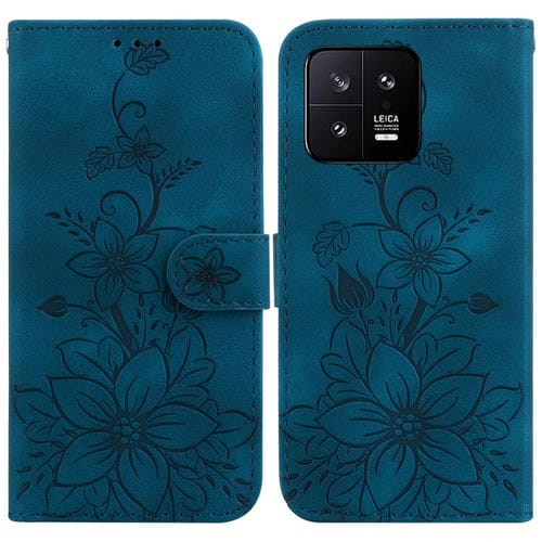 Para Xiaomi 13 5G Lily Funda de Teléfono de Cuero En Relieve (Azul Oscuro)