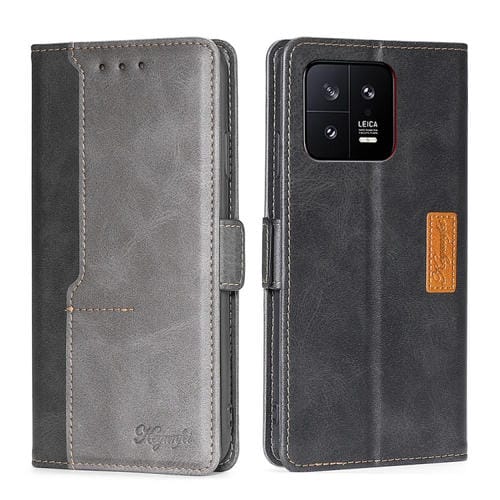 Para Xiaomi 13 Caja de Teléfono de Cuero con Hebilla Lateral de Color de Contraste (Negro + Gris)