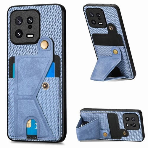 Para Xiaomi 13 Carbon Fiber Wallet Flip Card Holder Phone Case (Azul)