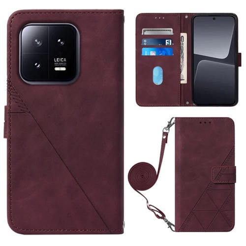 Para Xiaomi 13 Crossbody 3D Funda de Cuero con Tapa En Relieve para Teléfono (Rojo Vino)