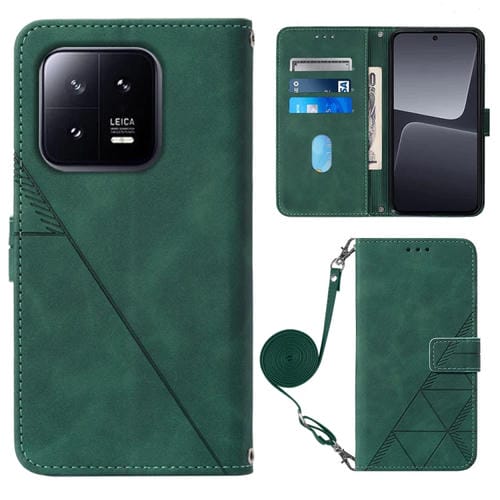 Para Xiaomi 13 Crossbody 3D Funda de Cuero con Tapa En Relieve para Teléfono (Verde Oscuro)