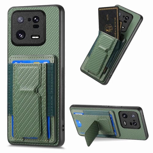 Para Xiaomi 13 Pro 5G Funda Plegable para Teléfono con Bolsa para Tarjeta Elástica con Soporte Plegable de Fibra de Carbono (Verde)