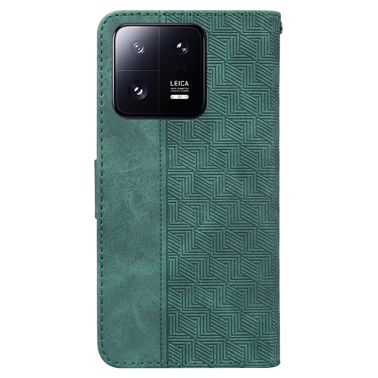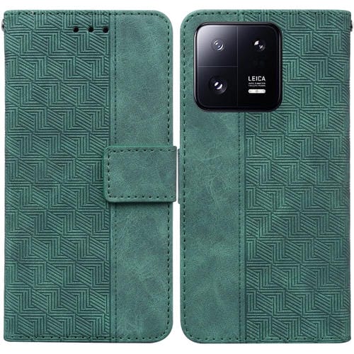 Para Xiaomi 13 Pro Estuche de Teléfono de Cuero con Relieve Geométrico (Verde)