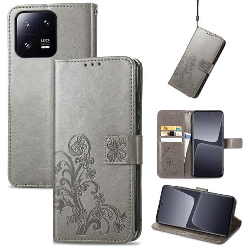 Para Xiaomi 13 Pro Estuche para Teléfono de Cuero con Hebilla En Relieve con Cierre de Cuatro Hojas (Gris)