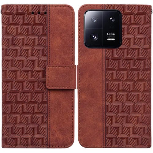 Para Xiaomi 13 Pro Estuche para Teléfono de Cuero con Relieve Geométrico (Marrón)