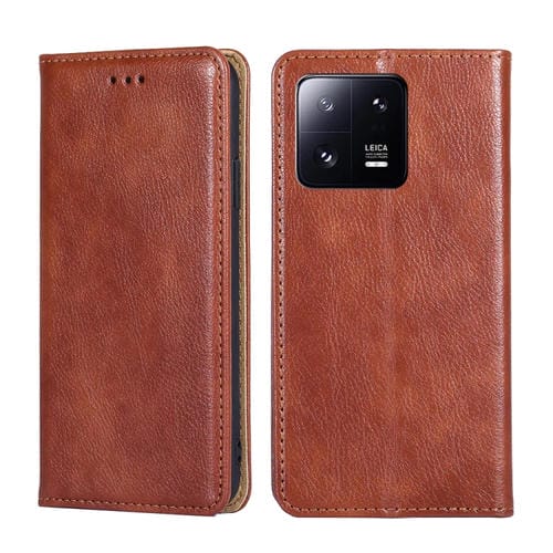 Para Xiaomi 13 Pro Estuche para Teléfono de Cuero Magnético de Color Sólido con Aceite Brillante (Marrón)