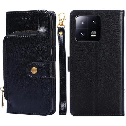 Para Xiaomi 13 Pro Funda de Cuero con Cremallera para Teléfono (Negro)