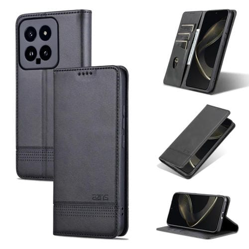 Para Xiaomi 14 Azns Funda De Teléfono De Cuero Con Tapa Con Textura De Pantorrilla Magnética (Negro)