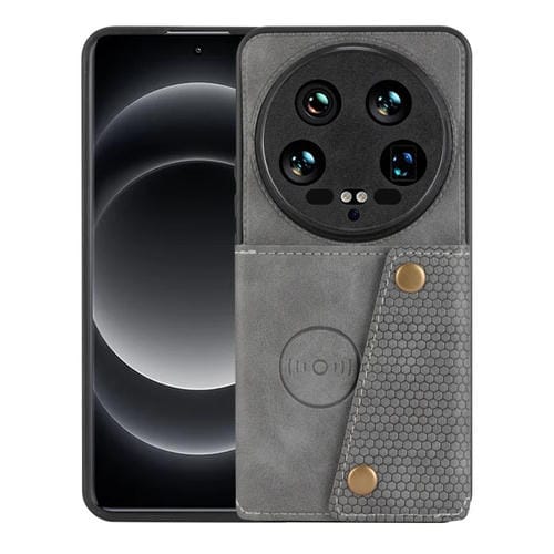 Para Xiaomi 14 Funda Magnética Para Teléfono Con Ranuras Para Tarjetas Con Doble Hebilla (Gris)
