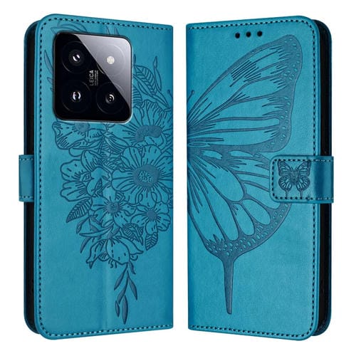 Para Xiaomi 14 Pro 5G Funda De Teléfono De Cuero Con Mariposa En Relieve Global (Azul)