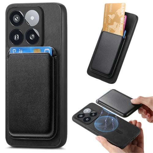 Para Xiaomi 14 Pro 5G Retro Magsafe Card Bag Pu Funda Para Teléfono Con Contraportada (Negro)