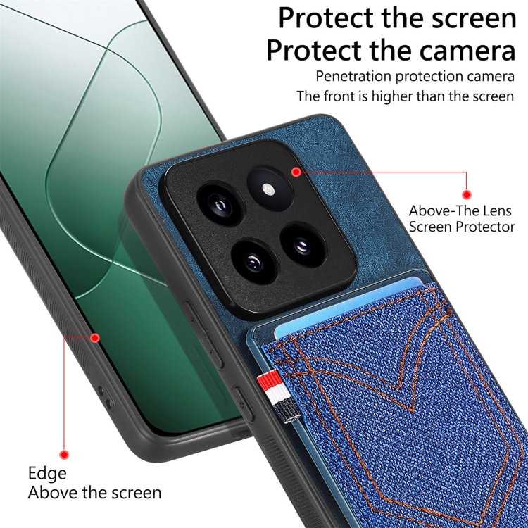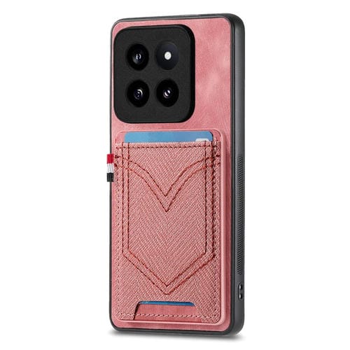 Para Xiaomi 14 Pro Funda Para Teléfono Con Piel De Cuero Con Textura Vaquera Y Ranura Para Tarjeta (Rosa)