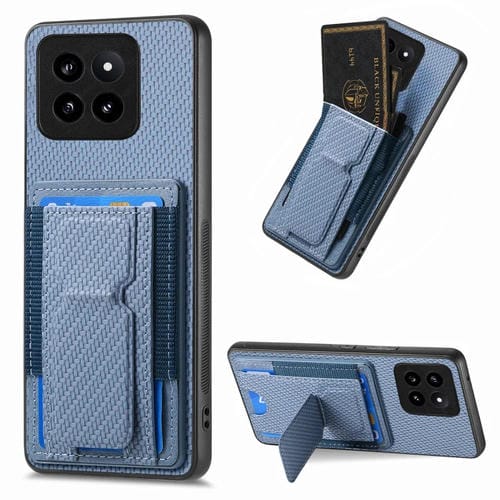 Para Xiaomi 14 Pro Funda Plegable Para Teléfono Con Bolsa Para Tarjeta Elástica Con Soporte Plegable De Fibra De Carbono (Azul)
