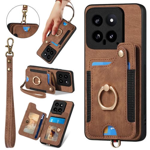 Para Xiaomi 14 Pro Retro Skin-Feel Ring Funda Para Teléfono Con Billetera Rfid Con Múltiples Tarjetas (Marrón)
