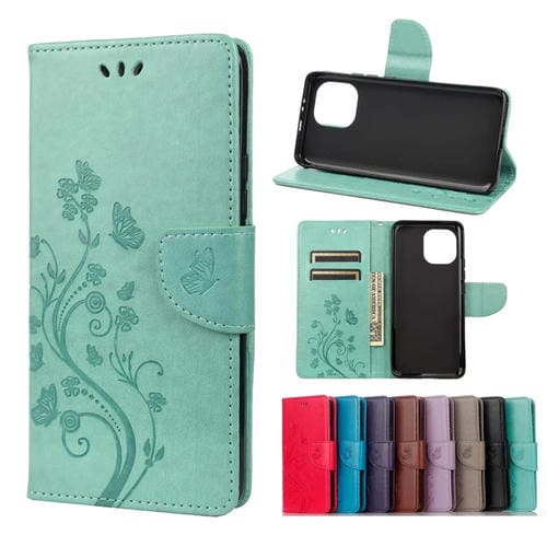 Para Xiaomi Mi 11 Patrón de Flores de Mariposa Flip Horizontal Funda de Cuero con Soporte y Ranuras para Tarjetas y Billetera (Verde)