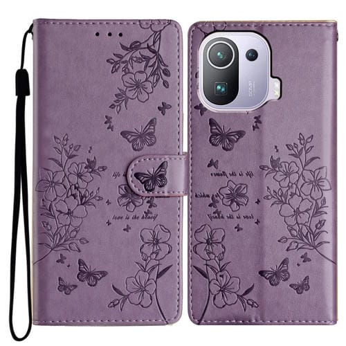 Para Xiaomi Mi 11 Pro Funda de Cuero para Teléfono con Mariposas y Flores (Púrpura)