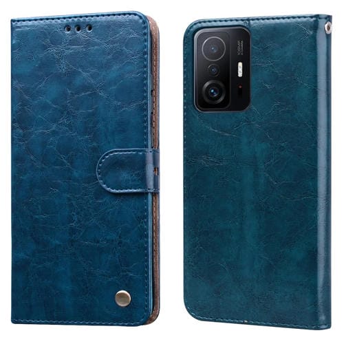 Para Xiaomi Mi 11T Funda Telefónica de Cuero de Textura de Cera de Aceite (Azul)