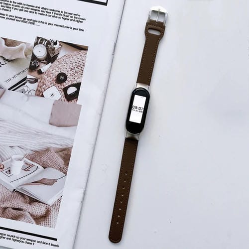 Correa de Cuero para Xiaomi Mi Band 3 y 4 con 8 Hebillas (Caqui)