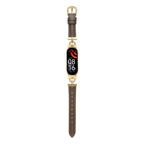 Correa para Xiaomi Mi Band 7 Acero en Forma de D con Correa de Cuero Genuino (Oro Dark Brown)