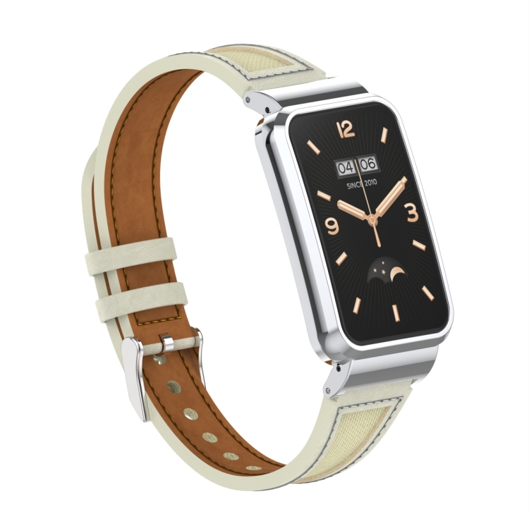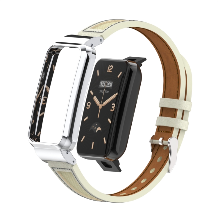 Banda para Xiaomi Mi Band 7 Pro con Marco de Metal y Cuero de Cintura Pequeña (Blanco Cálido)