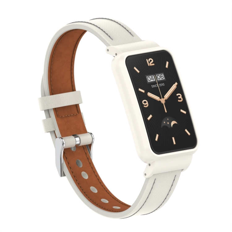 Correa de Reloj Xiaomi Mi Band 7 Pro Marco Metal Cuero Microfibra (Blanco Cálido)
