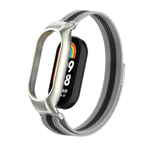 Caja de Metal Integrada + Banda Magnética Milanesa para Xiaomi Mi Band 8 (Plata + Negro)