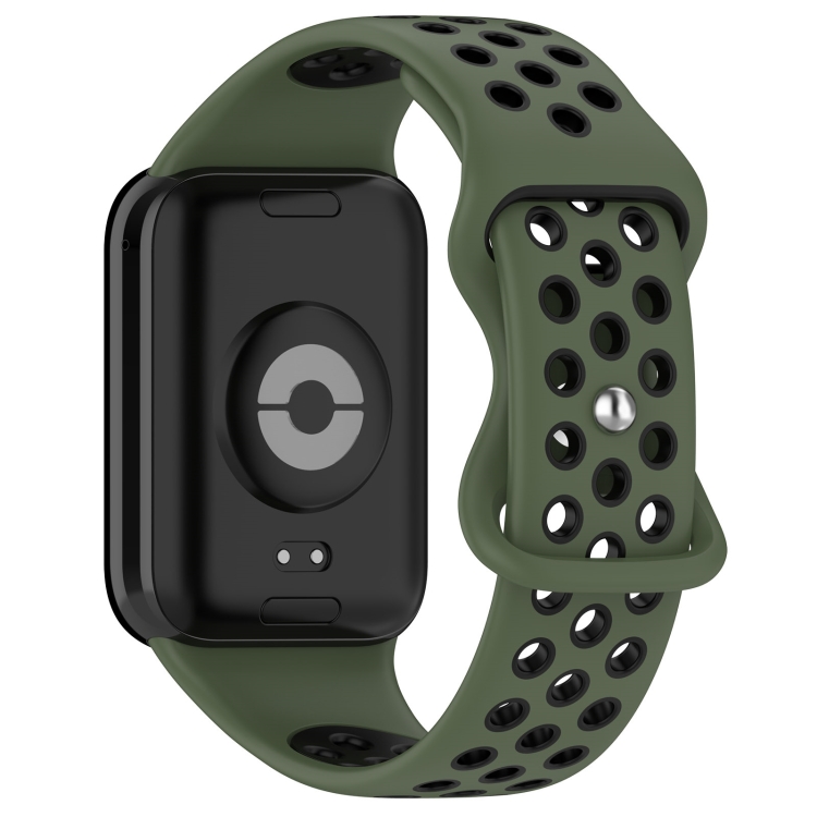 Correa de Silicona para Xiaomi Mi Band 8 con Hebilla de Mariposa Doble Color (Verde Oliva, Negro)
