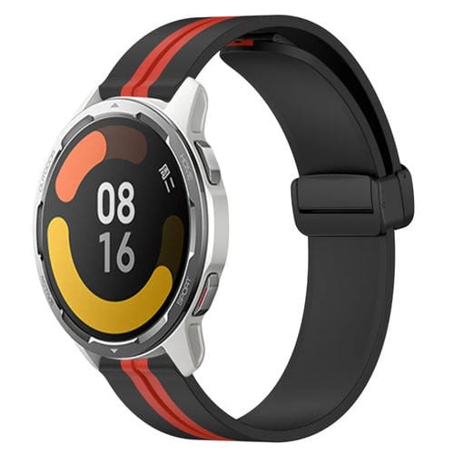 Correa de Silicona para Xiaomi Mi Watch Color 2 22mm con Cierre Magnético Plegable (Negro + Rojo)