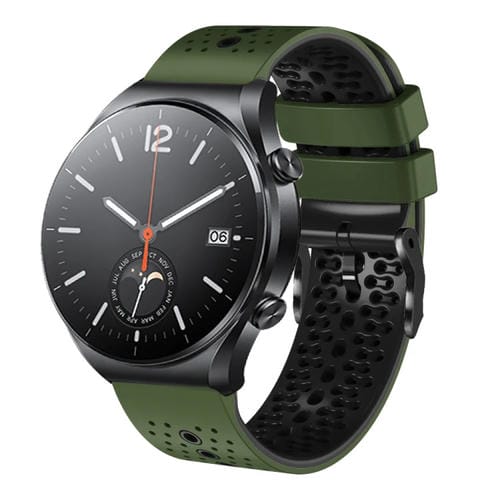 Banda de Reloj Xiaomi Mi Watch S1 22mm Silicona Perforada Dos Colores (Verde Militar + Negro)