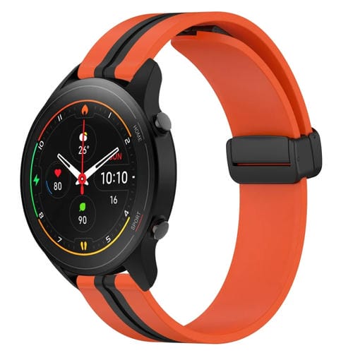Correa de Reloj Xiaomi Mi Watch S1 Pro 22mm Silicona Cierre Magnético Plegable (Naranja + Negro)